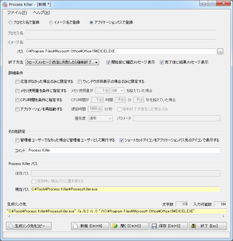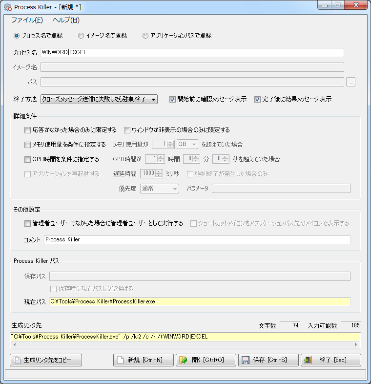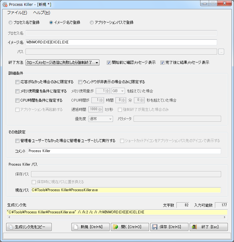 プロセス名で登録 イメージ名で登録 アプリケーションパスで登録